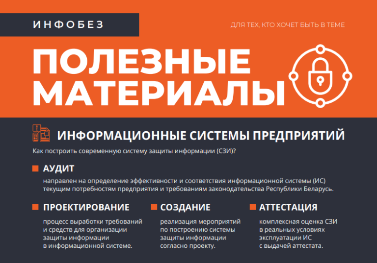 Специально для наших любимых клиентов мы собрали актуальную информацию по информационной безопасности, начиная от аудита ИС и заканчивая этапом получения аттестации СЗИ ИС. Бонусом дополнили материал перечнем законодательных актов для построения системы защиты информации.